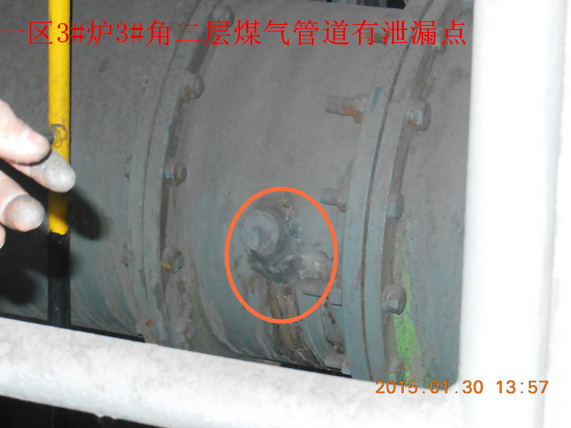 1.3#爐3#角二層煤氣管道有泄漏點(diǎn);