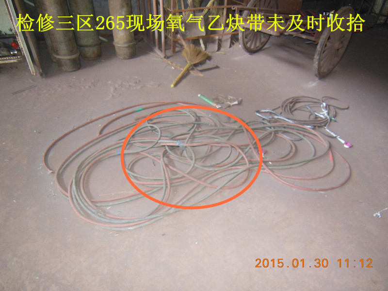1.檢修三區(qū)265現(xiàn)場(chǎng)氧氣帶未及時(shí)收拾;