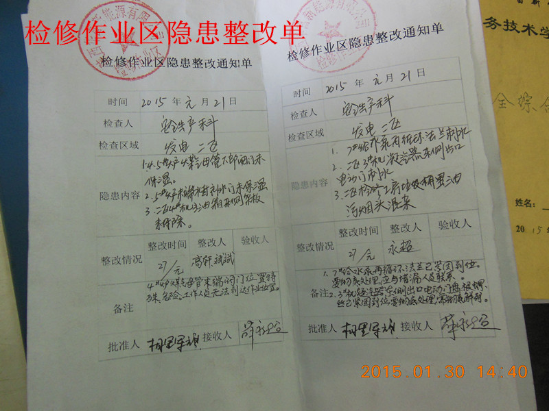 發(fā)電三區(qū):上周檢查內(nèi)容2項(xiàng)未整改,本周檢查共發(fā)現(xiàn)問(wèn)題3 項(xiàng):