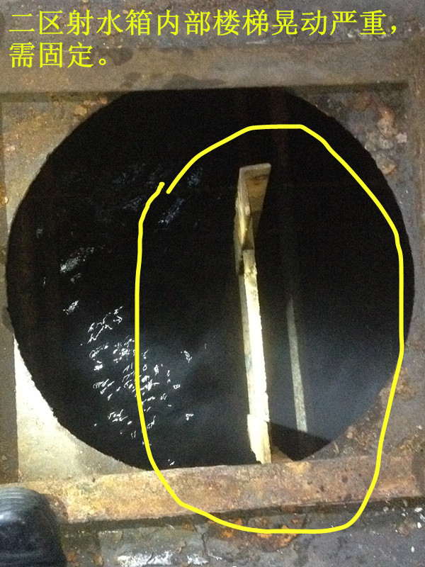 3.3#機(jī)射水箱內(nèi)部爬梯晃動(dòng)嚴(yán)重需固定;