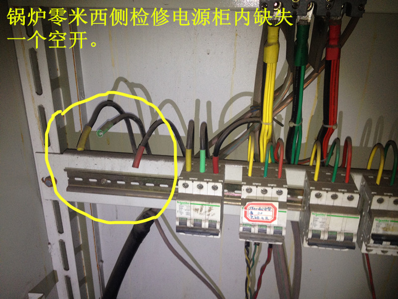 9.二區(qū)4#爐零米檢修電源柜空開缺失;