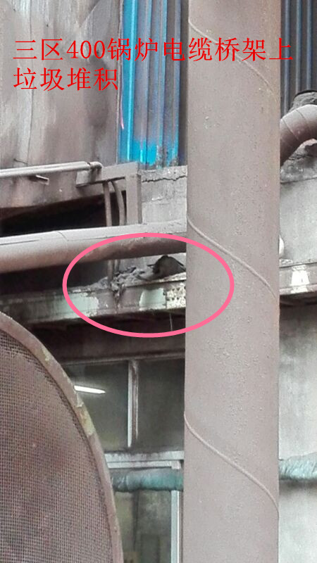 14.400鍋爐電纜橋架上部垃圾堆積;