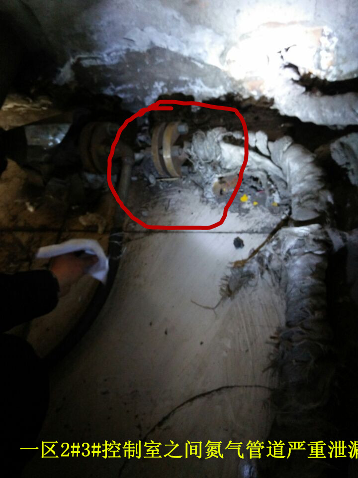 11.2#3#控制室門口之間氮?dú)夤艿绹?yán)重泄漏;
