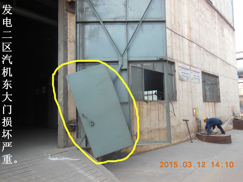 2、 發(fā)電二區(qū)機(jī)房東大門(mén)損壞嚴(yán)重。