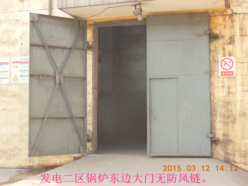 3、 發(fā)電二區(qū)鍋爐東側(cè)大門(mén)無(wú)防風(fēng)鏈。