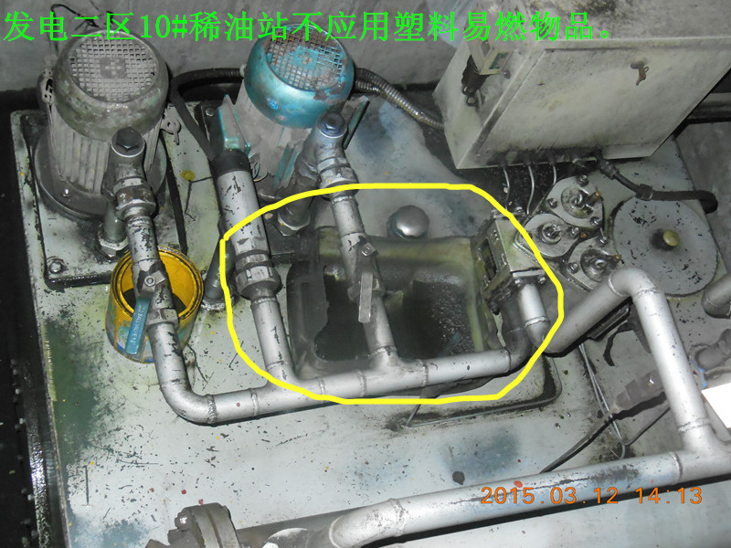4、 發(fā)電二區(qū)10#稀油站不應(yīng)用塑料易燃物品接油。