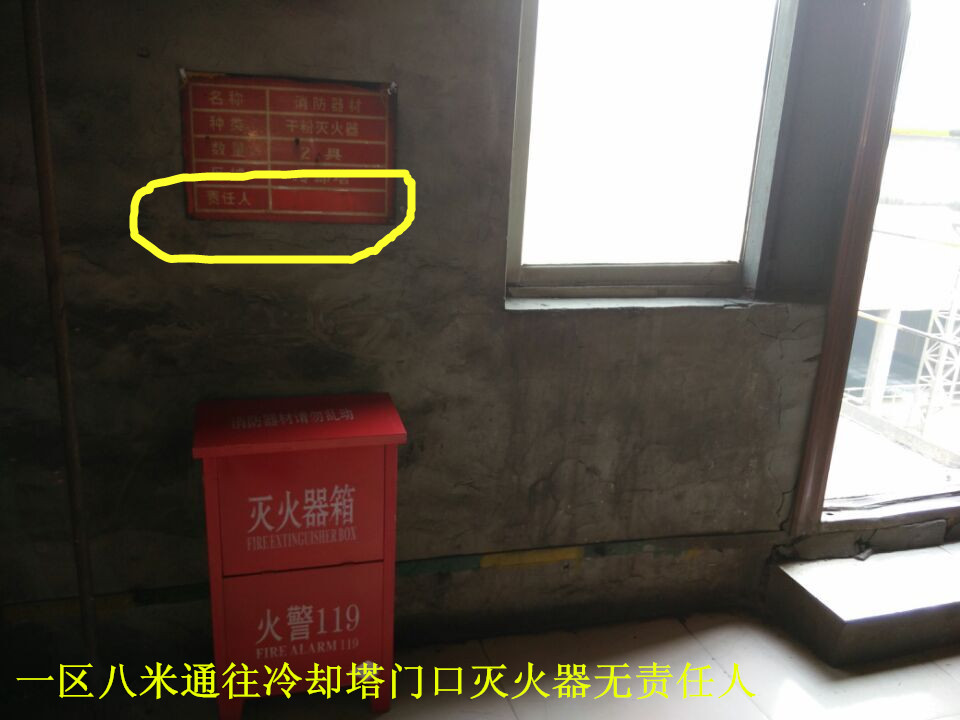 7、八米通往冷卻塔走廊門(mén)口滅火器無(wú)責(zé)任人。