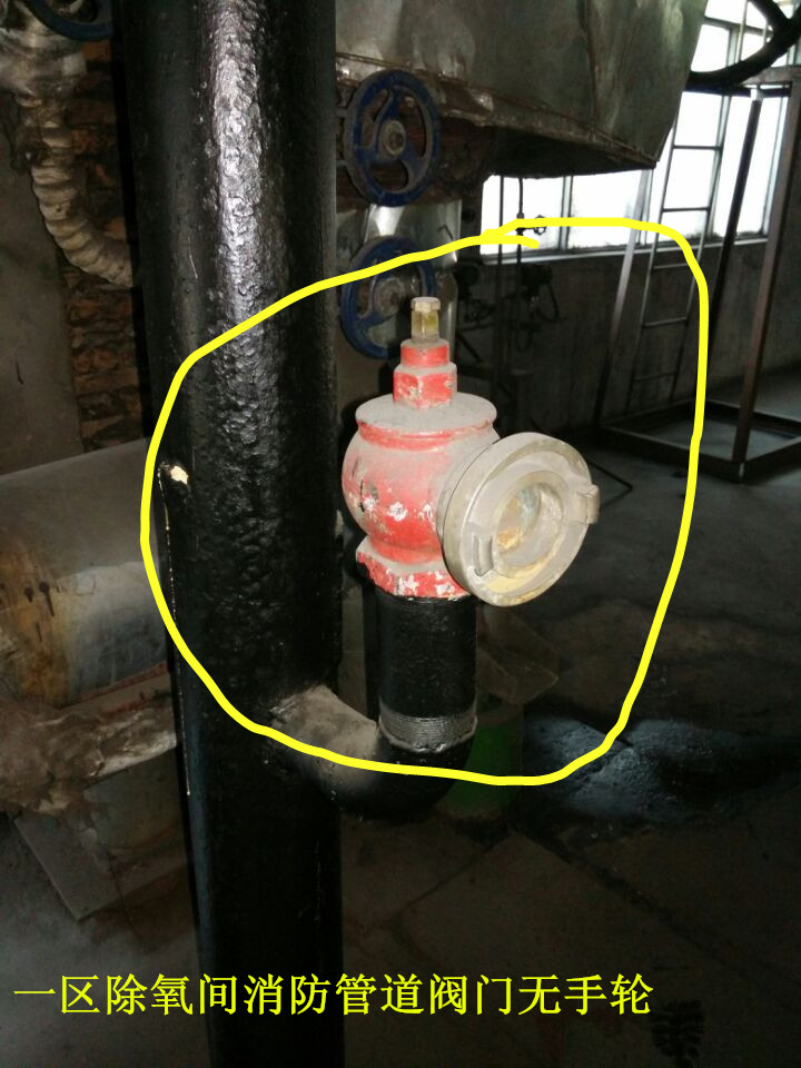 5、除氧間消防管道閥門(mén)無(wú)手輪。