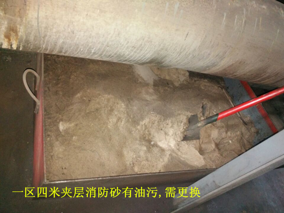 10、汽機(jī)零米及四米夾層消防砂有油污,需及時(shí)更換。
