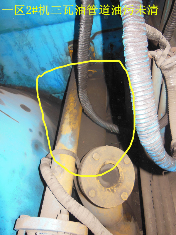 7、 一區(qū)2#機(jī)三瓦油管道油污,需清理;