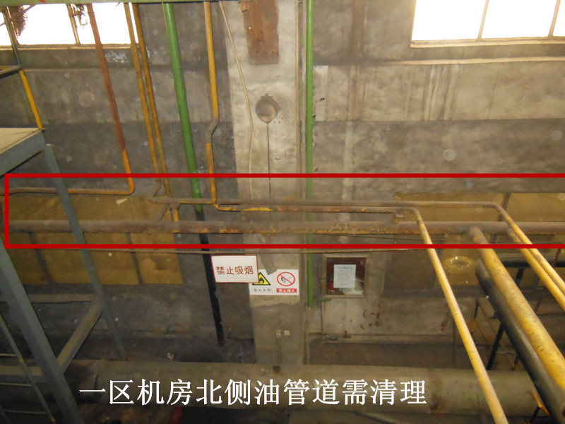11、 一區(qū)1#機(jī)機(jī)頭下部油管道油泥,需清理;