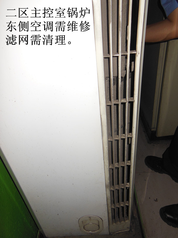 6、 二區(qū)主控室東側(cè)空調(diào)室內(nèi)機(jī)濾網(wǎng)臟,需清理;