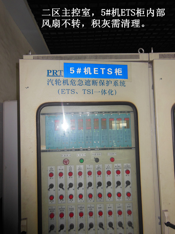 6、 二區(qū)集控室5#機(jī)ETS柜內(nèi)部風(fēng)扇不轉(zhuǎn),衛(wèi)生需清理;