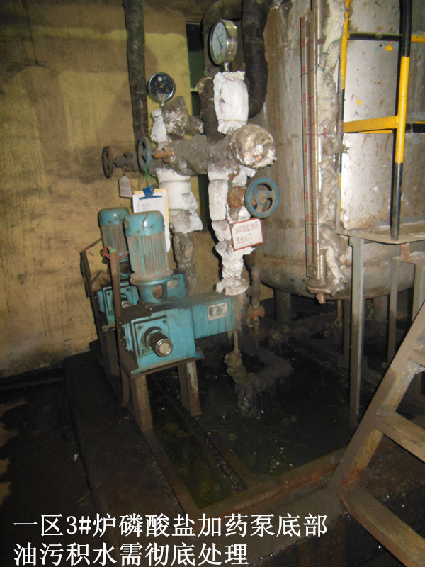 16、 3#爐磷酸鹽加藥泵底座油泥,需清理;