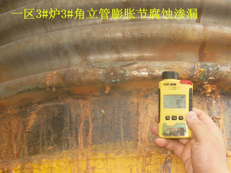 1、一區(qū)3#爐3#角立管膨脹節(jié)腐蝕滲漏;