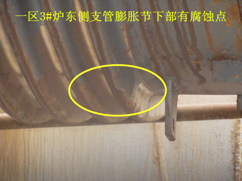 4、一區(qū)3#爐東側(cè)支管膨脹節(jié)下部有腐蝕點;