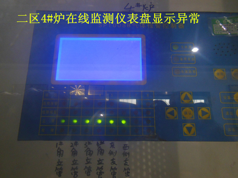 2、二區(qū)4#爐在線監(jiān)測儀表盤顯示異常;