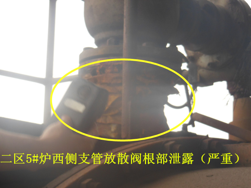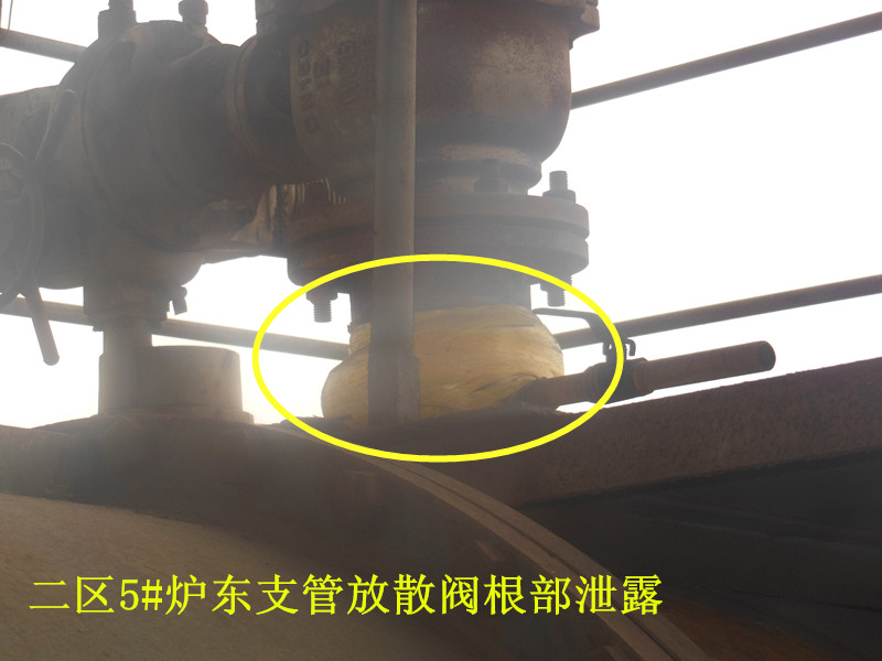 5、二區(qū)5#爐西側(cè)支管放散閥根部泄露(嚴(yán)重);