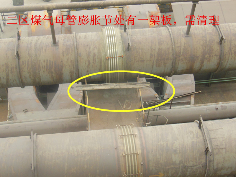 4、二區(qū)煤氣母管膨脹節(jié)處有一架板需處理;
