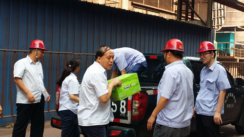 連日來(lái)高溫持續(xù)不下,公司領(lǐng)導(dǎo)牽掛生產(chǎn)一線的員工們。7月28日,公司總經(jīng)理石軍生,及各位副總、科長(zhǎng)等一行領(lǐng)導(dǎo)來(lái)到各作業(yè)區(qū),看望和慰問(wèn)了在高溫天氣下堅(jiān)守生產(chǎn)現(xiàn)場(chǎng)的一線員工們,將“清涼”親手送到員工手中,同時(shí)也帶來(lái)了公司黨政班子對(duì)基層生產(chǎn)一線員工的深切關(guān)懷和厚愛(ài)。