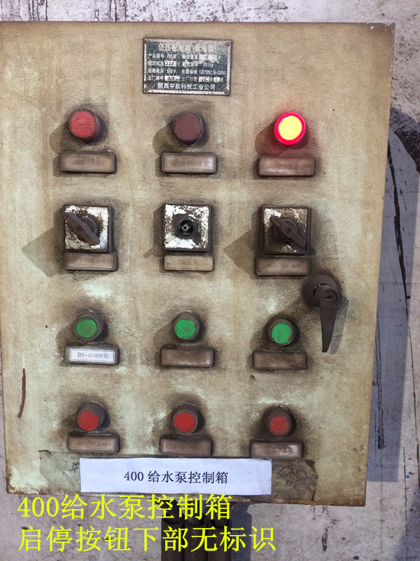 2.400給水泵控制箱啟停按鈕下部,無標識;