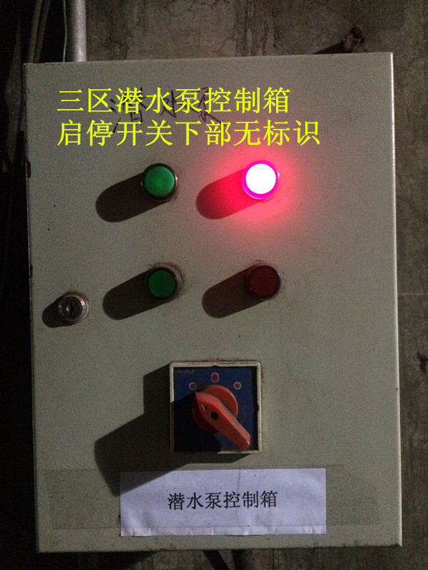 5.三區(qū)潛水泵控制箱啟停開關下部,無標識;