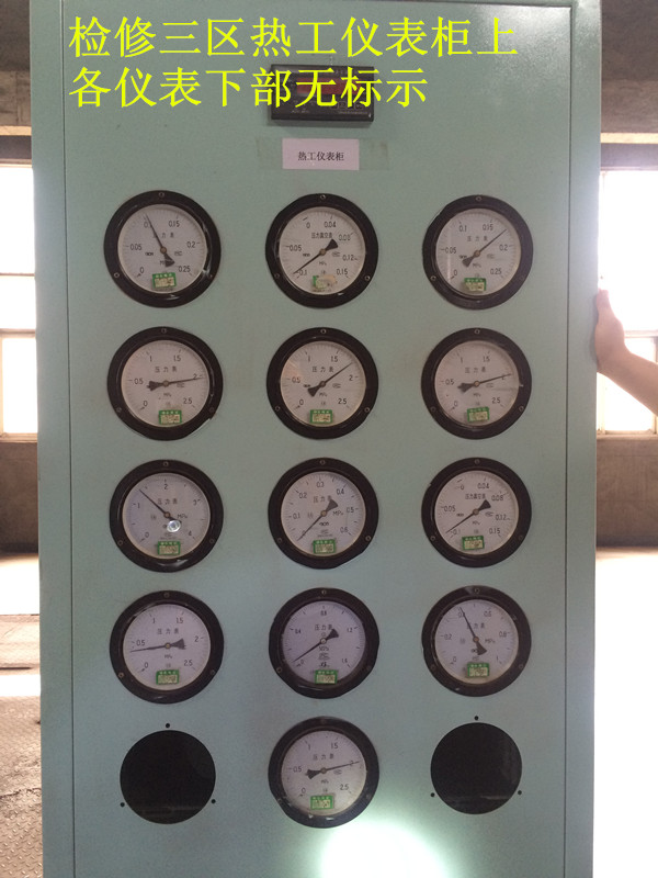 9. 檢修三區(qū)熱工儀表柜上,各儀表下部,無標示;