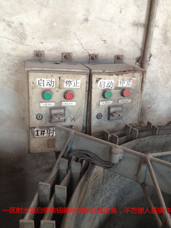 6.一區(qū)射水泵操作控制箱前堆放其他設備,不便于操作;