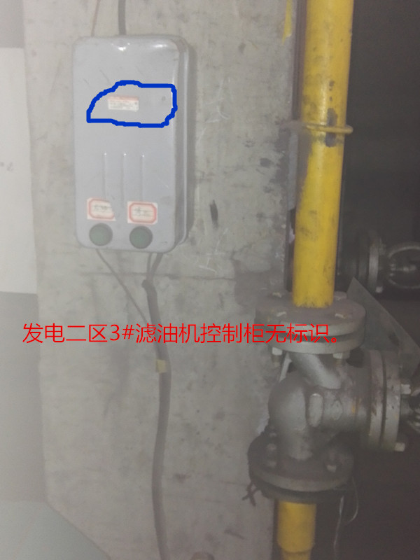 1.發(fā)電二區(qū)3#濾油機控制柜無標識;