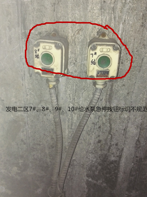 2.發(fā)電二區(qū)7#、8#、9#、10#給水泵急停按鈕標識不規(guī)范;