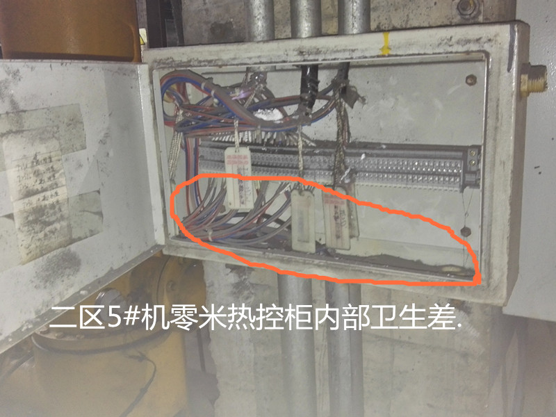5.二區(qū)5#機零米熱控柜內(nèi)部,衛(wèi)生差;