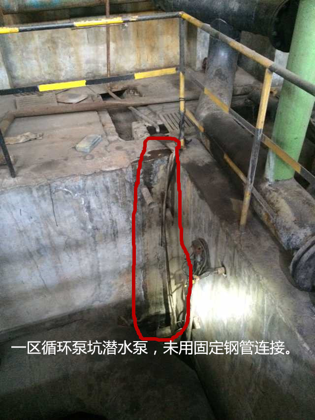 2、 2#機循環(huán)泵坑潛水泵未用鋼管引出;