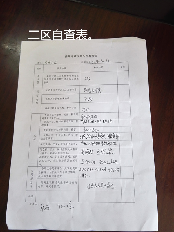1、 作業(yè)區(qū)未組織內(nèi)部循環(huán)水系統(tǒng)自查;