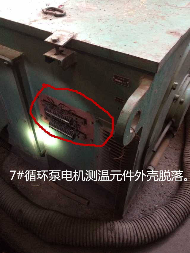 3、二區(qū)7#循環(huán)泵電機測溫元件外殼脫落;