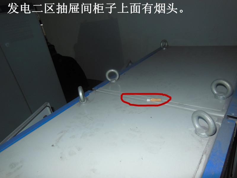 16.發(fā)電二區(qū)8米抽屜間柜子上部有煙頭;