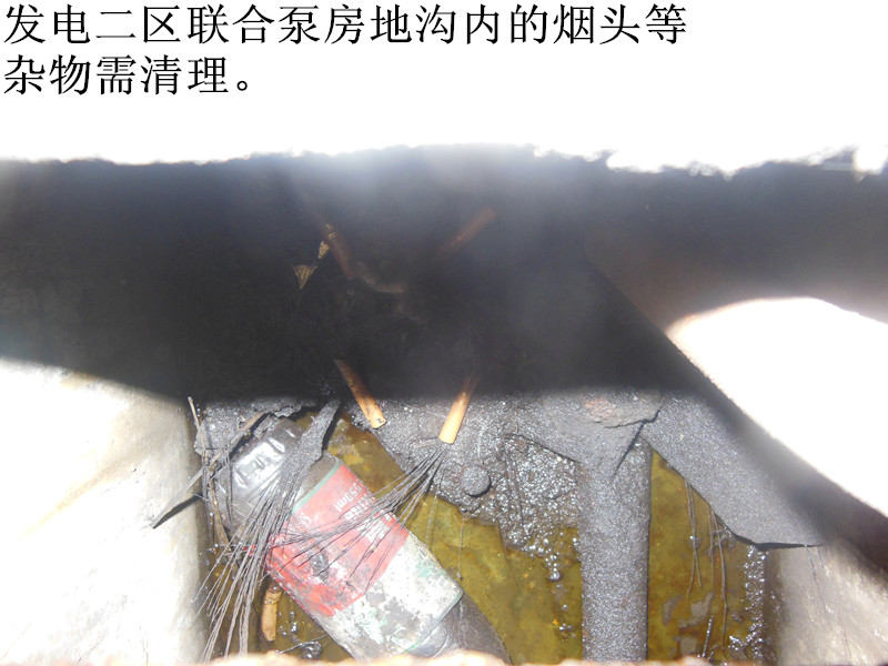17.發(fā)電二區(qū)聯(lián)合泵房地溝有煙頭等雜物需要清理;