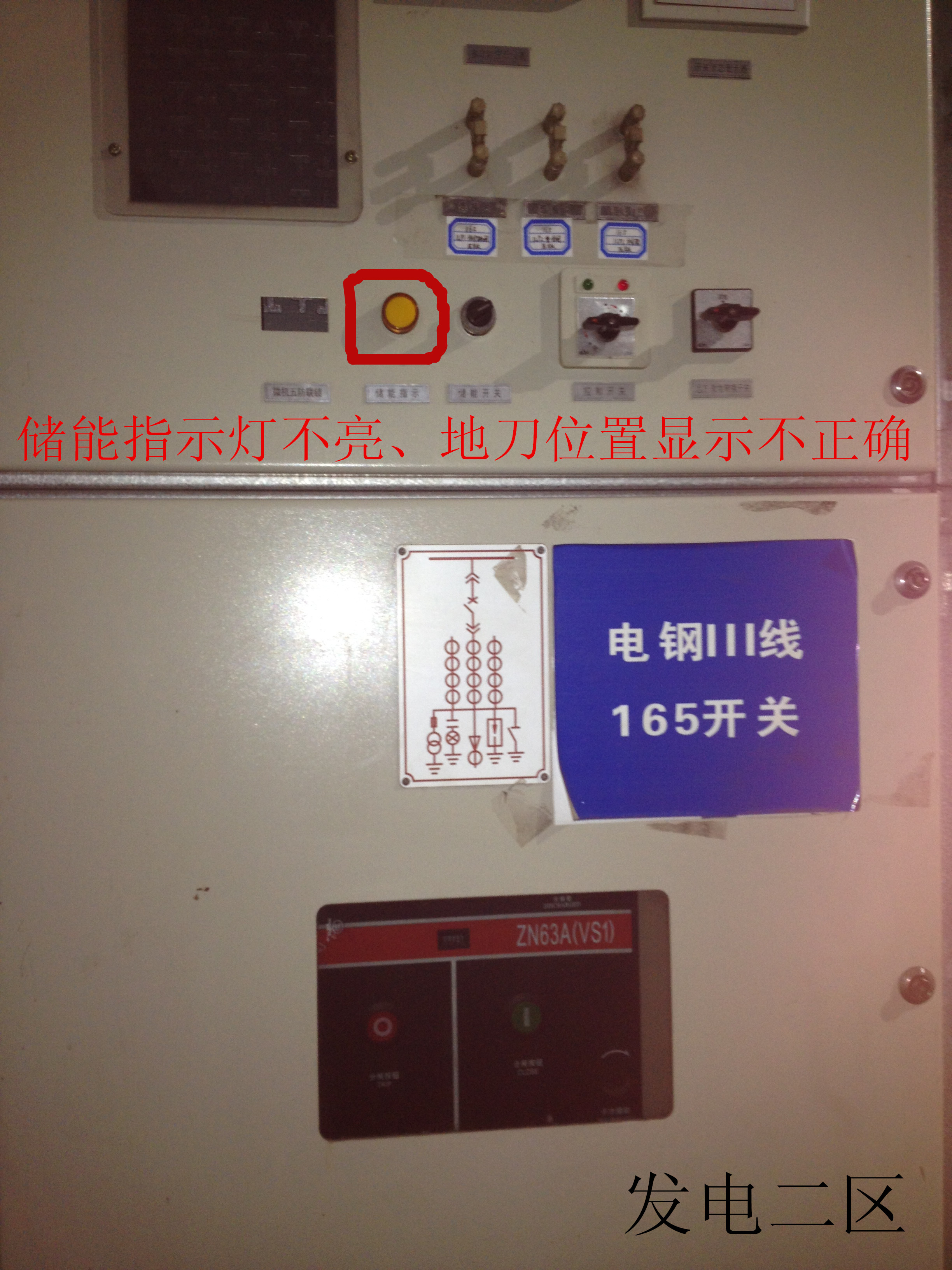 1.高壓配電室閑置電纜未定置存放; 2.603備用總進線開關合分閘指示燈不亮; 3.165、166電鋼線開關儲能指示燈不亮; 4.低壓配電室多處滴水; 5.低壓母聯(lián)備投開關狀態(tài)、指示不正確;